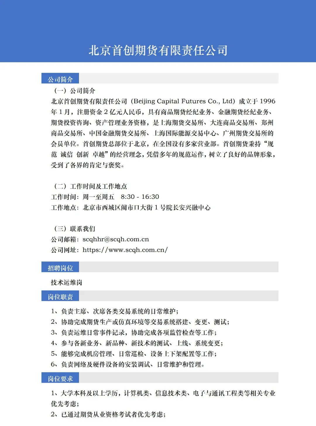 上一篇: 北京首创期货有限责任公司-市场开发岗招聘
